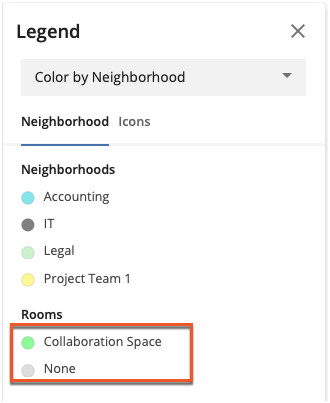 Space Types are visible in Visual Directory for rooms that are public. To view them on the floor plan, open the Legend.