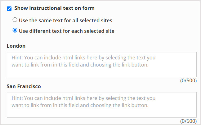 You can then enter the customized text for each site.