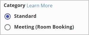 Choose the Category of Request Type you want to create. Standard requests are service requests in Request Manager that aren't tied to a room booking. Meeting (Room Booking) requests are created from a room booking and link services to the meeting.