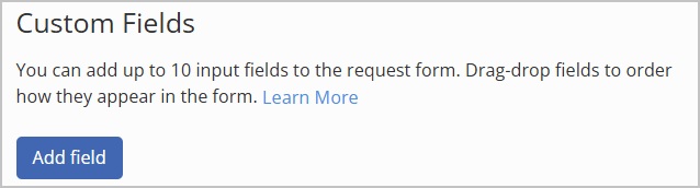 Select Add field to create any additional custom fields you wish to add.