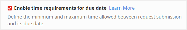 Mark the checkbox next to Enable time requirements for due date to define minimum and maximum time between request deadlines.