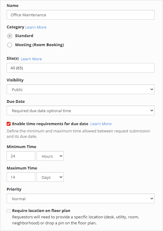 Mark the checkbox if you wish to require location on floor plan for this request type.