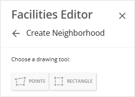 You'll be presented with two ways to draw your Neighborhood. The Points option lets you draw each line individually. The Rectangle option lets you draw a rectangle. Choose the option you prefer, then draw the Neighborhood around the seats, rooms, and utilities you’d like to include.