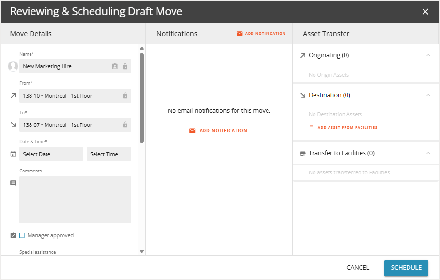 Scheduling a move helps you plan when a move should take place, so your team knows what’s happening and when.